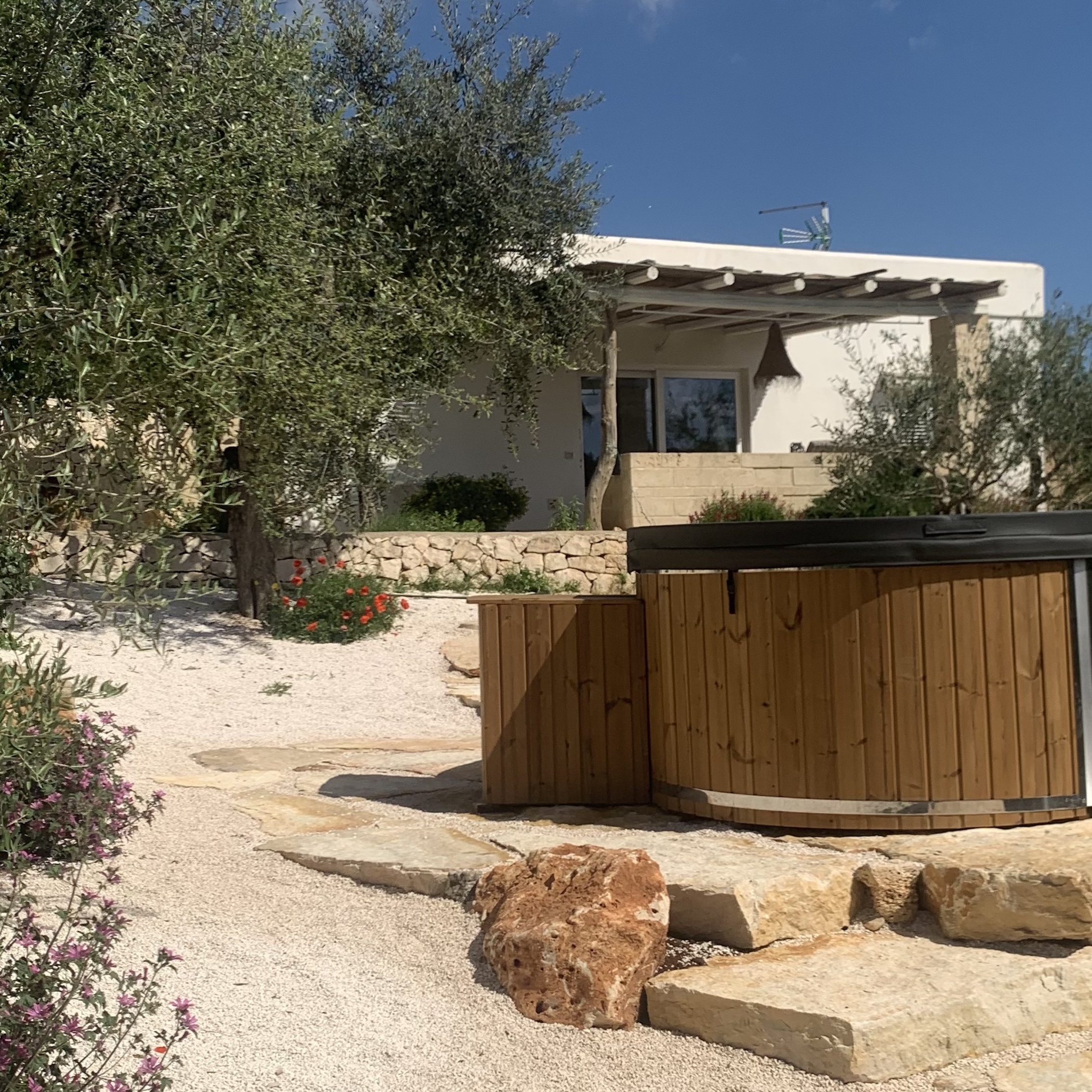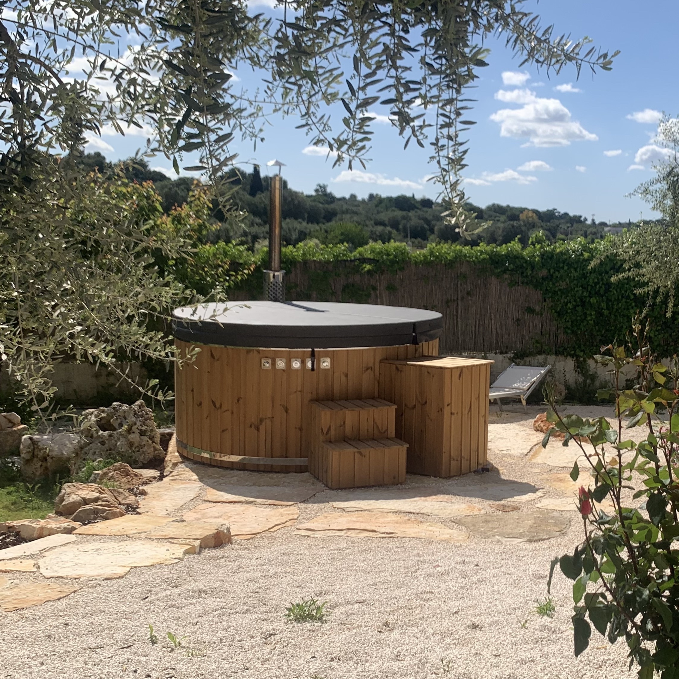 - Jacuzzi vasca idromassaggio esclusiva e privata rotonda diametro 2m per 8-9 persone con riscaldatore integrato a legna